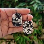 Dark and mesmerizing, the Shadowflame earrings blend swirling tones of black, ivory, and golden warmth. Each pair carries a flame-like marbled pattern, making them truly one-of-a-kind. Bold yet wearable, they add a touch of drama to everyday outfits and a spark of elegance to evening looks. Lightweight and comfortable, these earrings are designed to stand out without weighing you down.